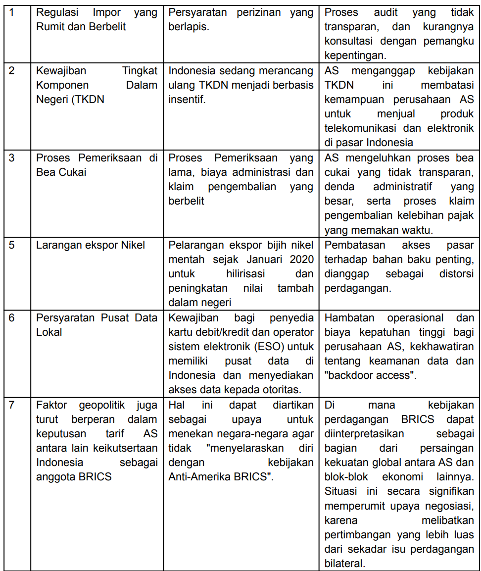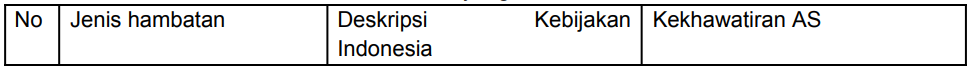 Tabel 1: Hambatan Non-Tarif Utama Indonesia yang Disoroti AS